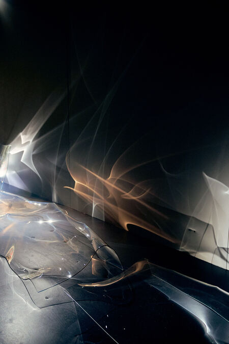 Иммерсивная инсталляция «Течение света» — метафора взаимодействия природного и рукотворного: место зарождения подземных вод, наполненное мягкими бликами света.
