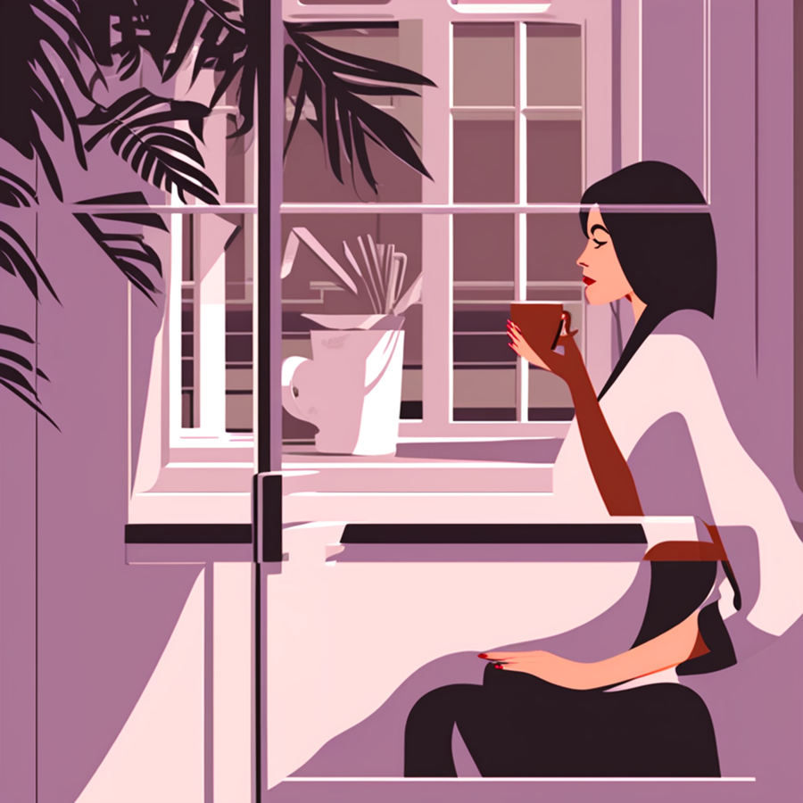 Объекты генерируются из контрастных форм и цветов. Нейросеть отлично повторяет векторный стиль художницы.