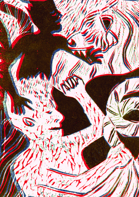 Две серии изделий с использованием комикса и иллюстрации, выполненных в линогравюрной технике.