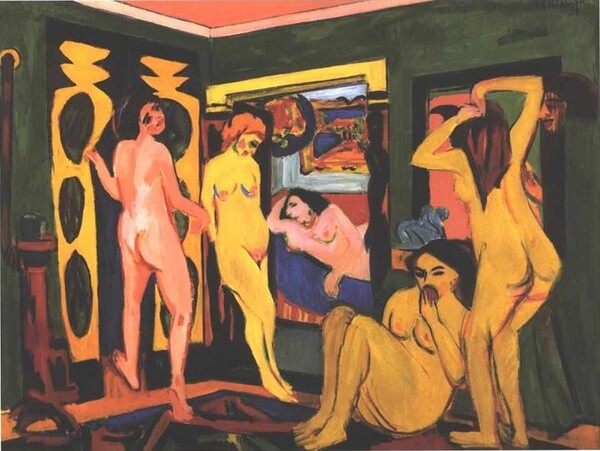 «Купальщицы в комнате», 1908 / «Женщины, пьющие кофе», 1907, Эрнст Людвиг Кирхнер