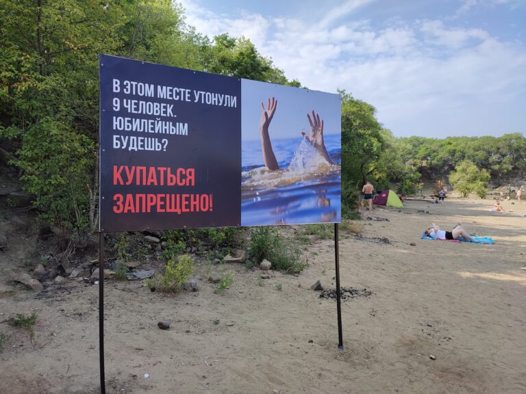 Возле опасного водоема, вместо стандартного знака «купаться запрещено» МЧС разместили баннер с надписью «В этом месте утонули 9 человек. Юбилейным будешь? Купаться запрещено!». Благородная цель предостеречь и обезопасить жителей города вылилась в черный юмор и саркастичный выбор. Такой тон абсолютно не подходит госструктуре, тем более спасающей жизни людей. Провокационная надпись сопровождалась фотографией утопающего, усиливая насмешку со стороны МЧС. Жители Благовещенска сильно возмутились, потребовав заменить рекламу на более уместную.