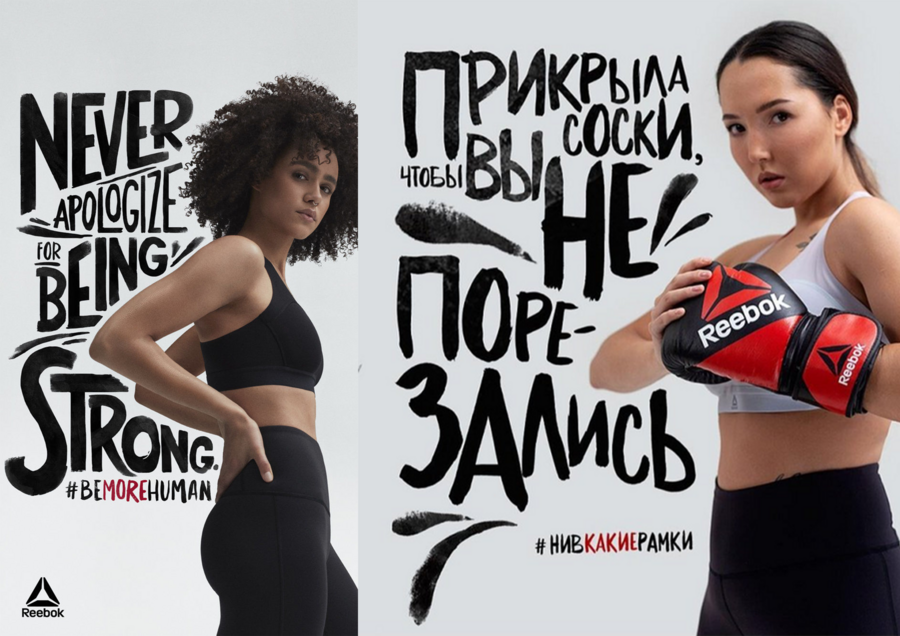 Но скандал возник, когда в 2019 году Reebok Russia решили адаптировать рекламную кампанию под российскую аудиторию. Не ясно, на каком этапе работы что-то пошло не так, но кампания «Be More Human» стала называться «Ни в Какие Рамки».