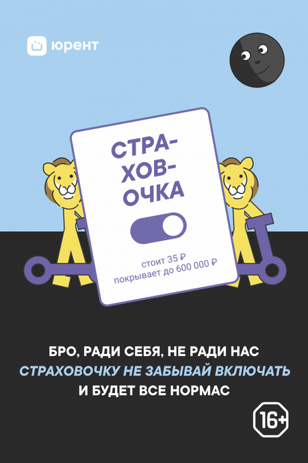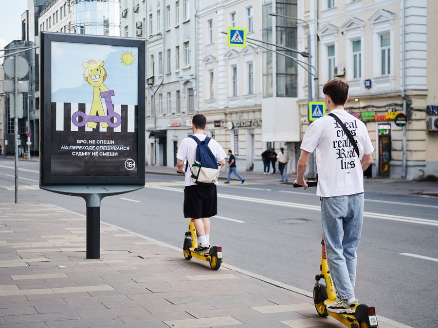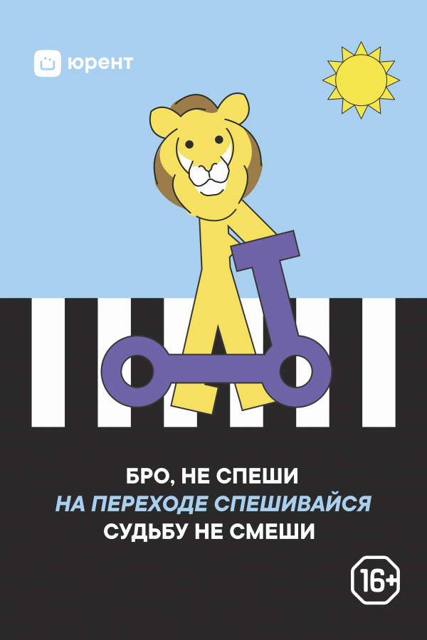 Юрент оторвались в уличной рекламе в 2023 году: серия уличных баннеров была направлена на напоминание о правилах езды на самокатах для клиентов. Бренд попытался подобрать игривый характер для рекламы, чтобы попасть в целевую аудиторию 16-30 лет, но немного переборщил.