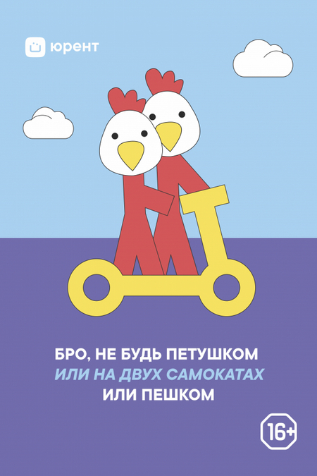 «Юрент» в своей рекламе призвал «не быть петушками» катающихся вдвоем на одном электросамокате [Электронный ресурс] // Афиша Daily. — URL: https://daily.afisha.ru/news/78319-yurent-v-svoey-reklame-prizval-ne-byt-petushkami-katayuschihsya-vdvoem-na-odnom-elektrosamokate/ (дата обращения: 16.11.2025).