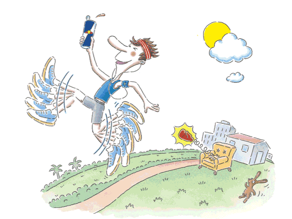 Экстремальное последствие подаётся в характерной для RedBull гиперболе: у человека буквально вырастают крылья и он летит после глотка энергетика. Обычное обещание бодрости доведено до абсурда — эффект напитка превращён в физическую способность, невозможную в реальности.