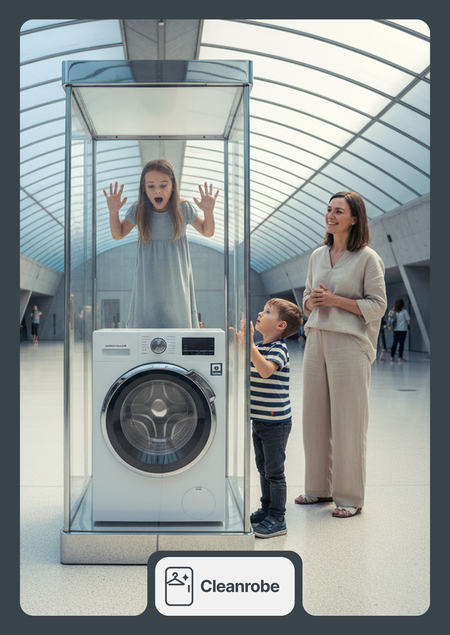 Действие разворачивается в будущем, где Cleanrobe полностью вытеснил привычные инструменты ухода за одеждой, настолько, что они стали музейными экспонатами. Мама приводит детей в музей и с лёгкой иронией рассказывает им о том, как люди когда-то стирали, сушили и гладили одежду вручную.