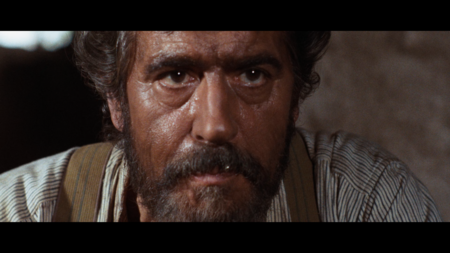 Как показать субъективно плохое состояние героя? С современнными технологиями можно снять POV, но на дворе 65-й год. Понятно, что лежащий на койке Хороший видит только верхнюю часть тела Злого. Но будет странно «замыливать» половину тела, но не фон. Если замылить с фоном, то получится совсем непонятно. Леоне выбирает close-up как компромис между ограниченностью технологии и донесения состояния.