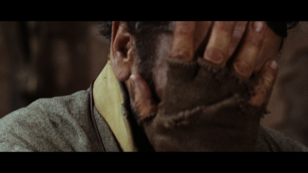 Пленный конфедерат плачет, пока играет на скрипке. Ведь знает, что его музыка заглушает звуки пыток. Extreme close-up исключительно для того, чтобы показать лишь отблеск влаги глаз, — всё, что пленному безопасно.