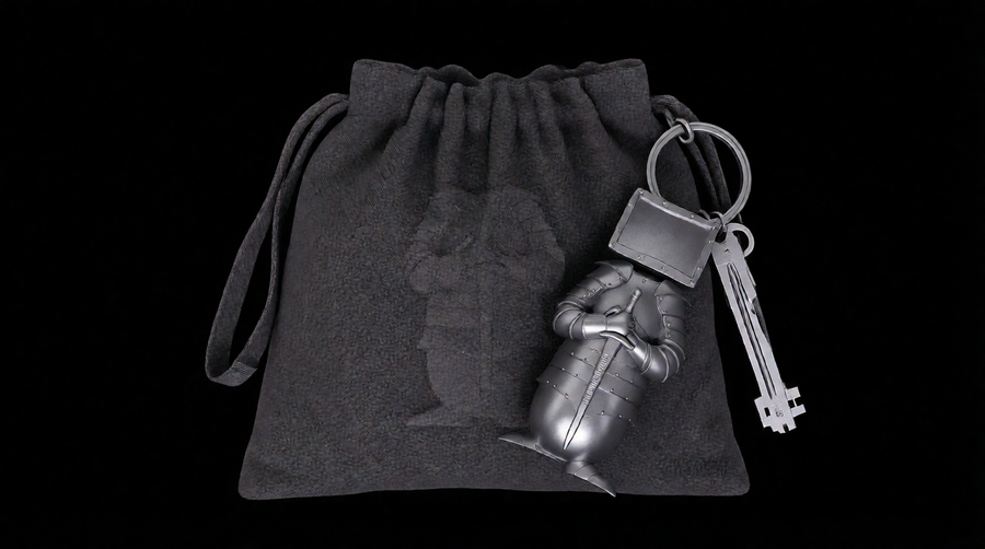 Фигурки в виде брелоков на мокапах, сгенерированных в Qwen