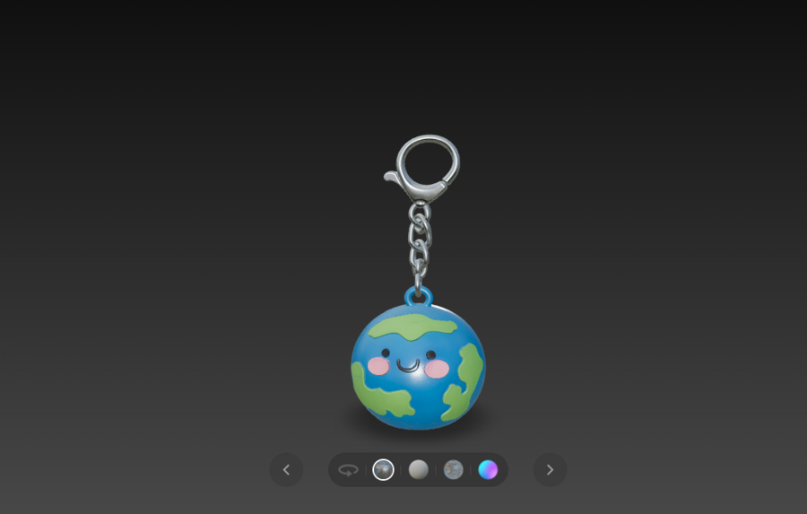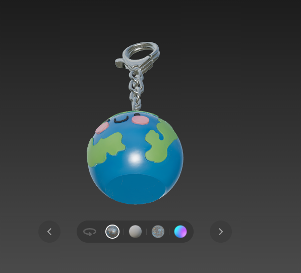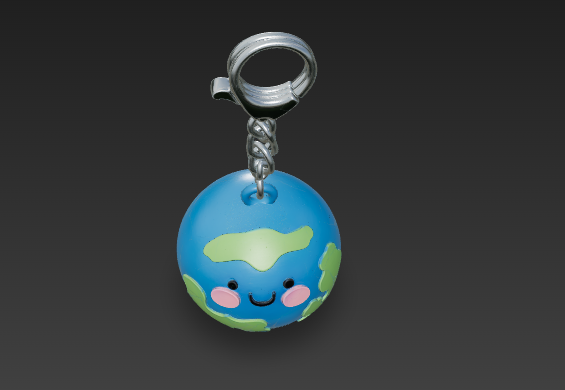 Брелок «Земля» Cute round 3D planet keychain, Earth design, smooth spherical shape, simple raised continents, friendly smiling face with small dot eyes and blush cheeks, integrated keychain loop on top, toy-like minimal 3D style, solid geometry suitable for 3D printing, no textures, clean surfaces, white background, studio lighting