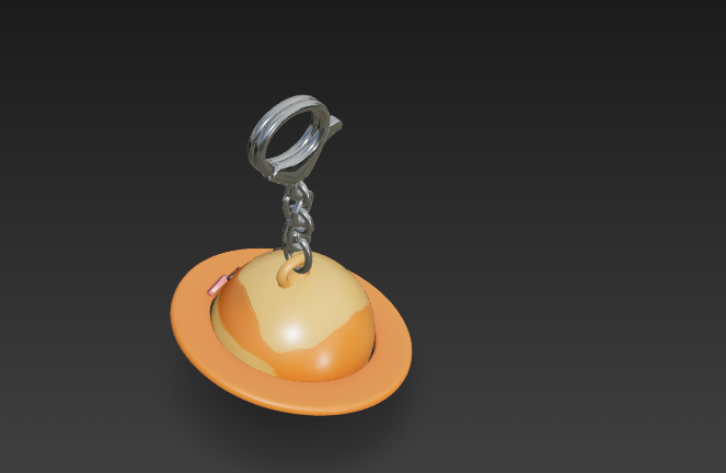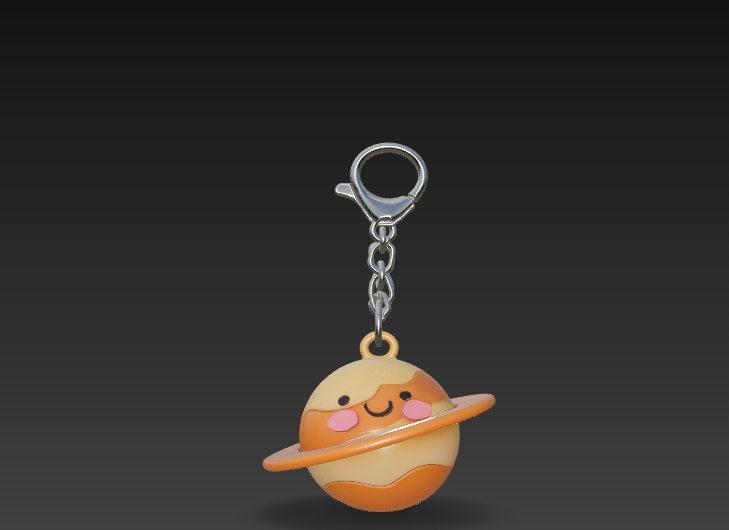 Брелок «Сатурн» Cute round 3D planet keychain, Saturn design, spherical body with thick rounded ring, ring connected as a solid printable form, friendly smiling face, toy design, minimal 3D style, integrated keychain loop, optimized for 3D printing, white background, studio lighting