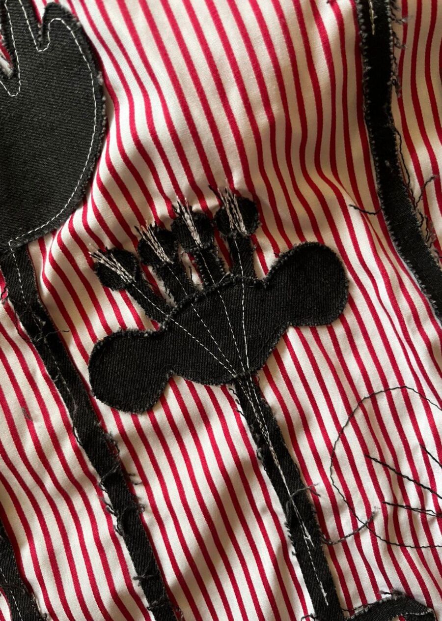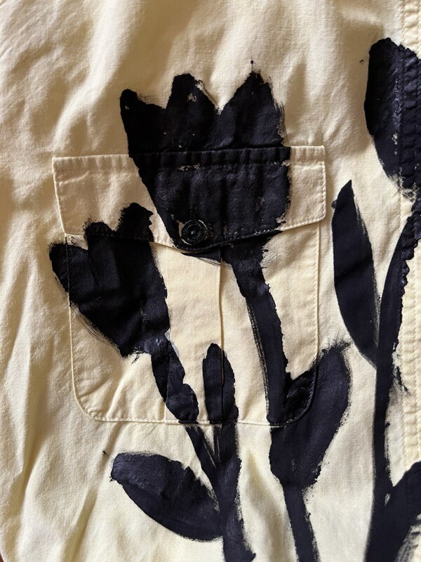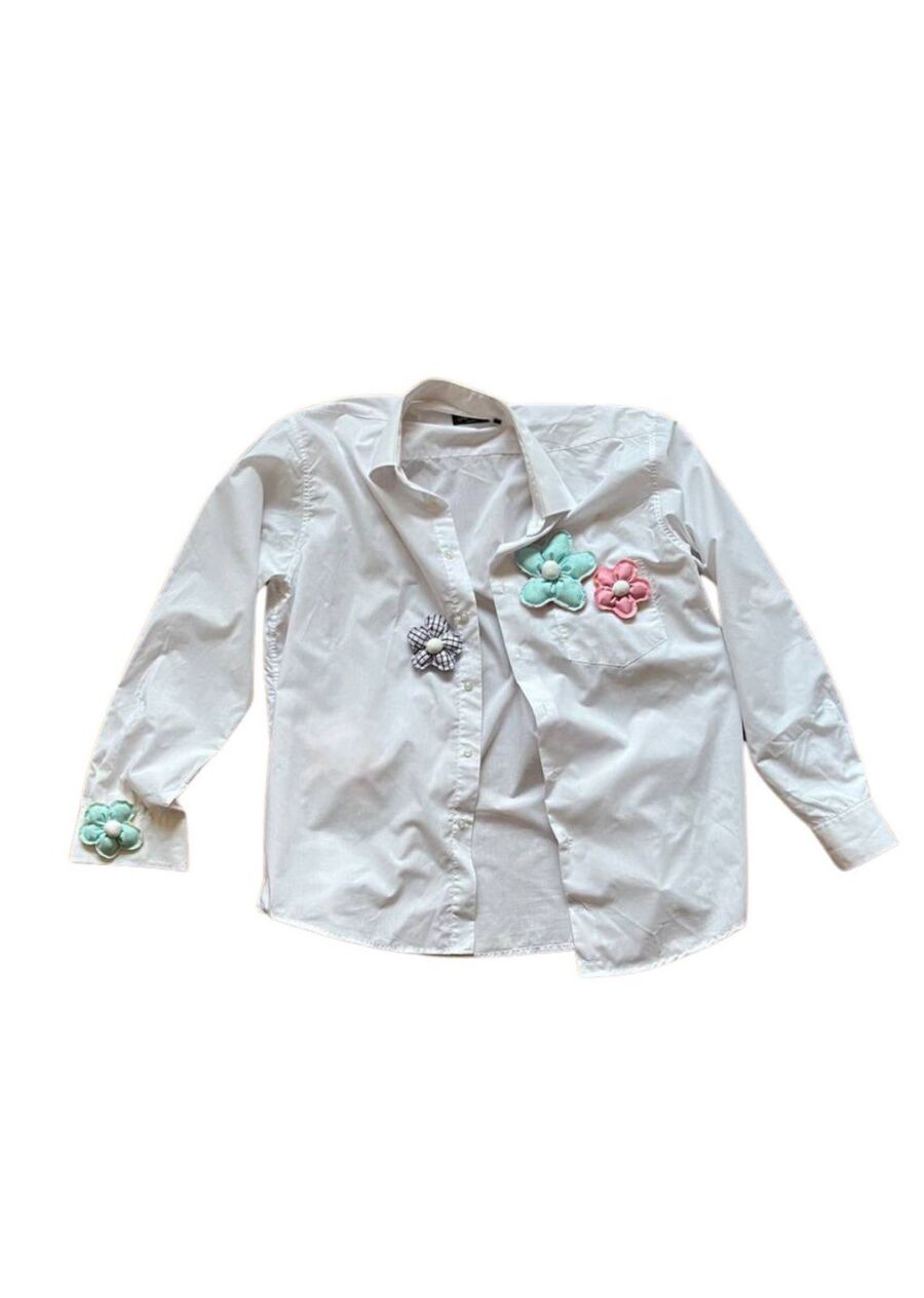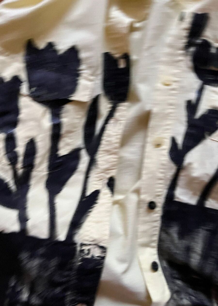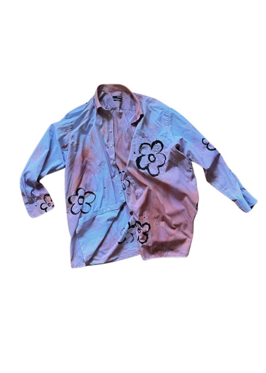 Я же винтовую лестницу украсила цветами, чтобы когда поднималась было красиво. А как поднялась — в результате — кастом-дроп из пяти цветочных рубашек.