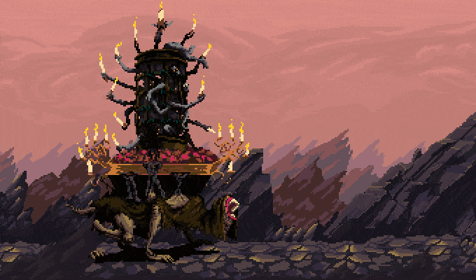 Анимации также есть в самой игре, но для удобства они взяты с портфолио разработчика: https://www.behance.net/gallery/85604481/Pixel-arts-and-animations-for-game-Blasphemous
