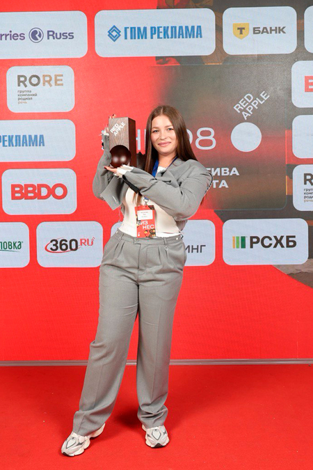 За эти три года я выиграла золото на фестивалях Red Apple, Lime и Sreda, получила серебро на международном фестивале D& AD, а также вошла в топ-5 юных креаторов России 2024 года по версии АКАР. Проработала 1,5 года в BBDO в качестве арт-директора, проведя огромное количество часов на съемочных площадках снимая рекламные ролики. Успешно закончила Wordshop и Mads, ожидая поступление на магистратуру.