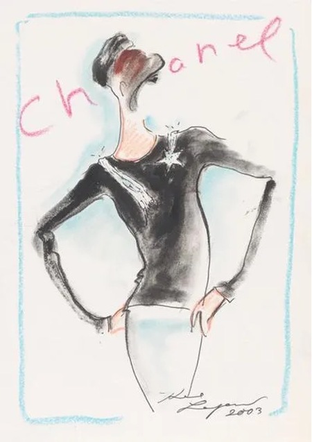 1-Эскиз Карла Лагерфельда для коллекции Métiers d’Art 2002. 2-Карл Лагерфельд. 1983 год. Фото: Хельмут Ньютон