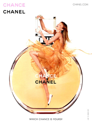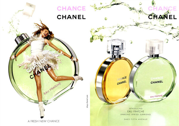 РЕКЛАМНАЯ КАМПАНИЯ АРОМАТА CHANCE Жак Польж создает аромат CHANCE, название которого напоминает о вере Габриэль Шанель в удачу и магическую силу талисманов. Впервые среди стилистических кодов Дома появляются круг и розовый цвет. Позднее будет выпущено несколько версий аромата: Chance Eau Fraîche (2007), Chance Eau Tendre (2010) и Chance Eau Vive (2015).