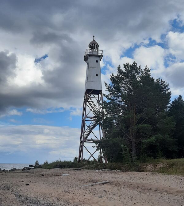 Построен в 1960 г. Находится на Кургальском полуострове, на территории государственного природного заказника «Кургальский» Ленинградской области. Маяк ажурный, металлический с деревянной обрешеткой. В 2003 г. разорен мародерами. Не действует.