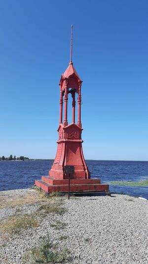 12-метровый знак носит название финской деревни Vuohensalo (до 1948 г.), что переводится как «козья глушь». Ныне это поселок Моторное, на берегу Ладожского озера, в 160 км от г. Санкт-Петербурга. К знаку ведет вымощенный гранитными плитами мол финской посторойки.