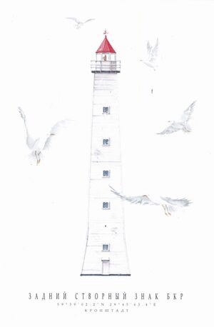 Задний створный знак Большого Кронштадтского рейда, больше известный как маяк Деревянный, находится в г. Кронштадт. Внешне маяк действительно кажется деревянным, однако под обшивкой у него ажурный металлический каркас. Дальность видимости 6 миль. Построен в 1949 г.