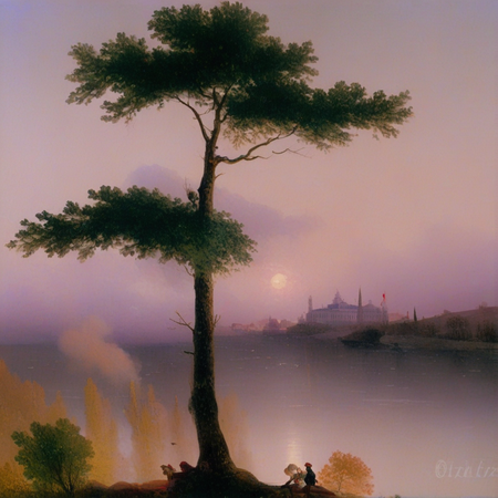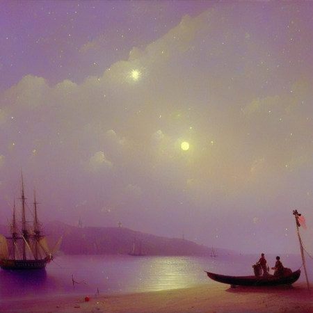 «Aivazovsky style children outside», «Aivazovsky style boats at night»