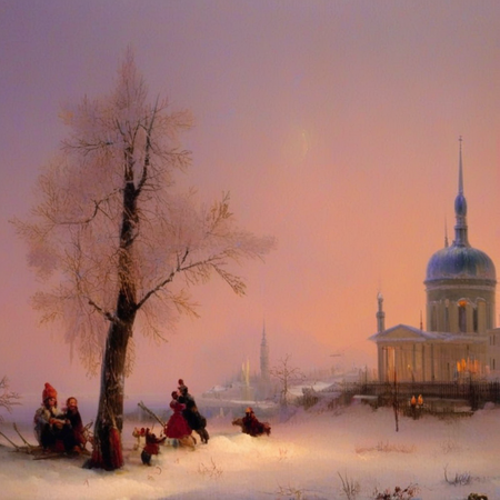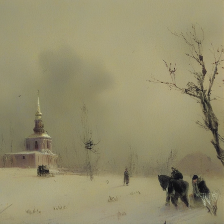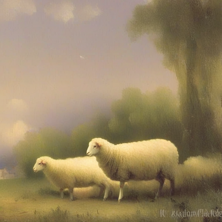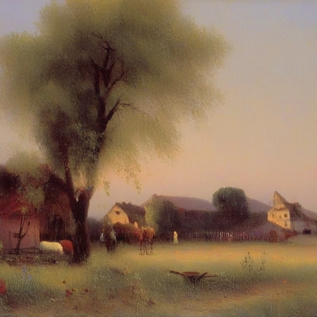 «Aivazovsky style church», «Aivazovsky style sheep in the field»