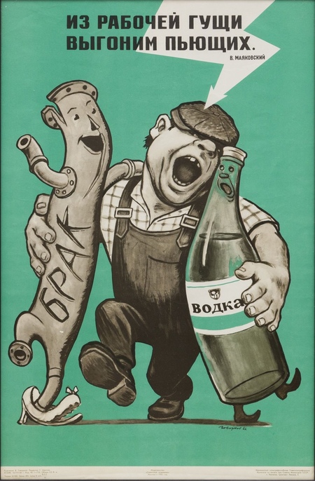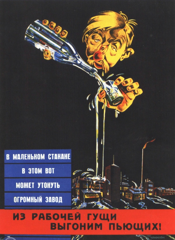 И. Янг, А. Черномордик. «Из рабочей гущи выгоним пьющих!». 1929 год. / В. Говорков. «Из рабочей гущи выгоним пьющих». 1966 год.