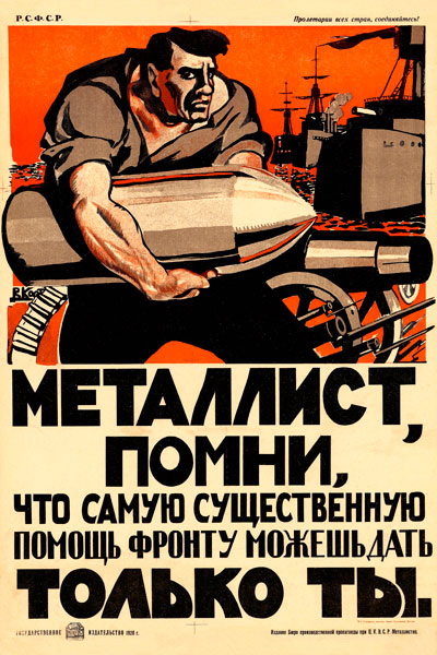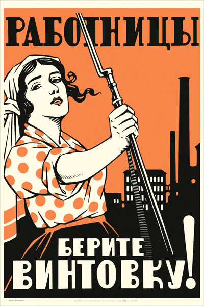 Неизвестный автор. «Работницы, берите винтовку!». 1917 год. / В. Н. Костяницын. «Металлист, помни, что самую существенную помощь фронту можешь дать только ты». 1920 год.
