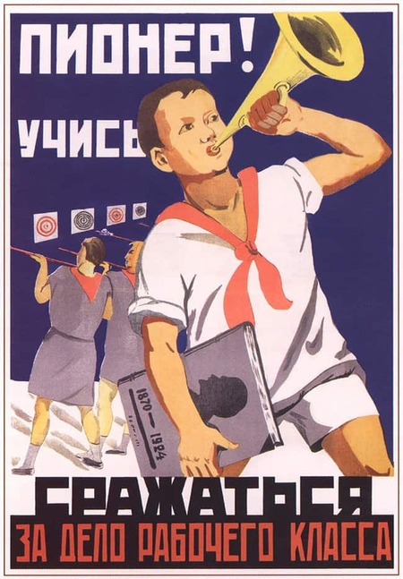 М. Нестерова-Берзина. «Учись отлично!». 1948 год. / Лебедев, Красильников Н. «Пионер! Учись сражаться за дело рабочего класса». 1930 год.