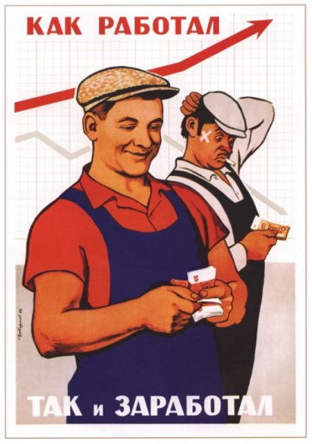 В. Говорков. «Как работал — так и заработал». 1964 год. / В. Говорков. «Молодой инженер, в цех!». 1956 год.
