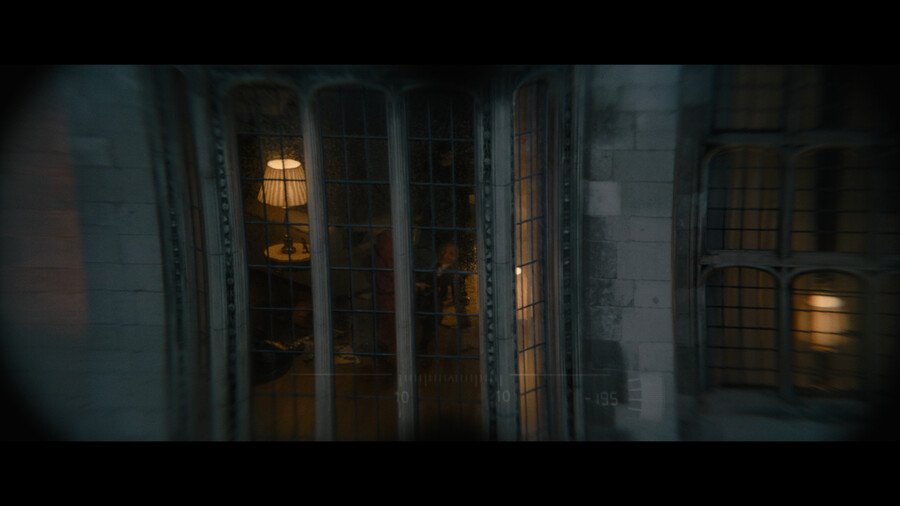 В первом кадре все кроме героя размыто. Так зрителю дополнительно сообщают, куда направлены взгляды. В следующем кадре от лица самого Брюса вновь используется размытие, что помогает также «следить» за фокусом героя.