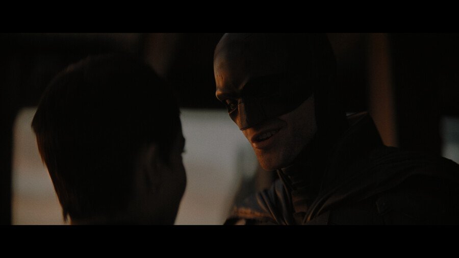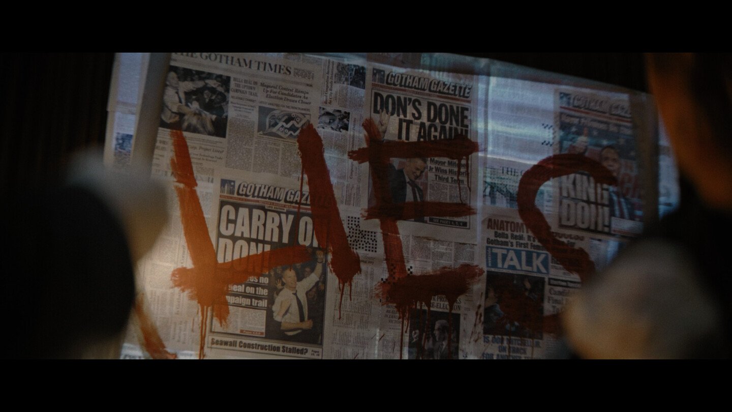 Схожая идеология лежит в основе визуальных приемов в «Бэтмене». Для съемки использовался сет анаморфных линз. Они были специально модифицированы так, чтобы края размывались, а объект в центре оставался четким. Таким образом кадр позволяет вовремя обращать внимание на значимые объекты или наоборот намеренно скрывать их, имитируя человеческий взгляд. Благодаря этим приемам картинка перестает быть по-голливудски стерильной и подчеркивает больше эмоций и впечатлений от композиции.