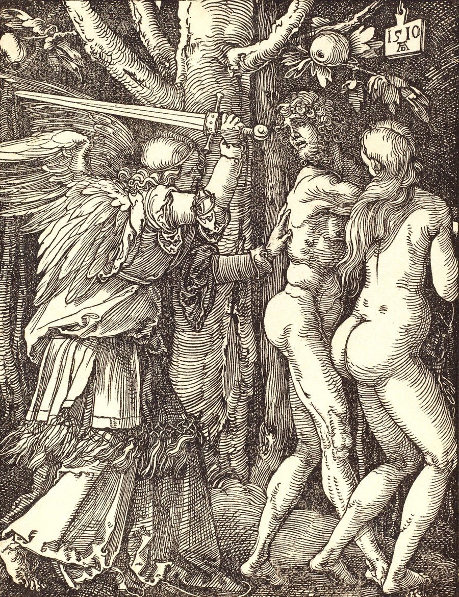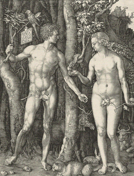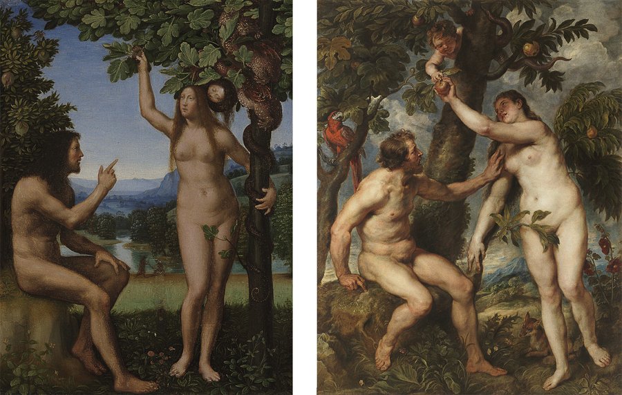 [2] Адам и Ева — Альбрехт Дюрер, гравюра, 1504; [2] Падение человека — Корнелис Корнелиссен, 1592