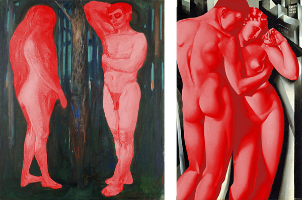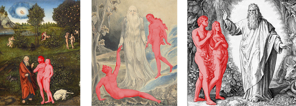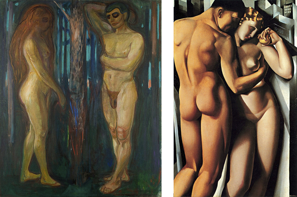 [2] Адам и Ева — Эдвард Мунк, 1918; [2] Адам и Ева — Татьяна де Лемпицка, 1932; [3] Адам и Ева скрываются от лица Господа