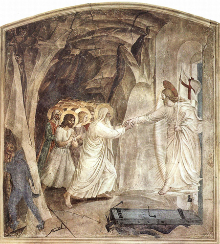 [6] Христос выводит из ада души праведников — фреска Фра Беато Анджелико, 1437—1446; [2] Христос выводит из ада души праведников — Андреа Мантенья, 1470—1475
