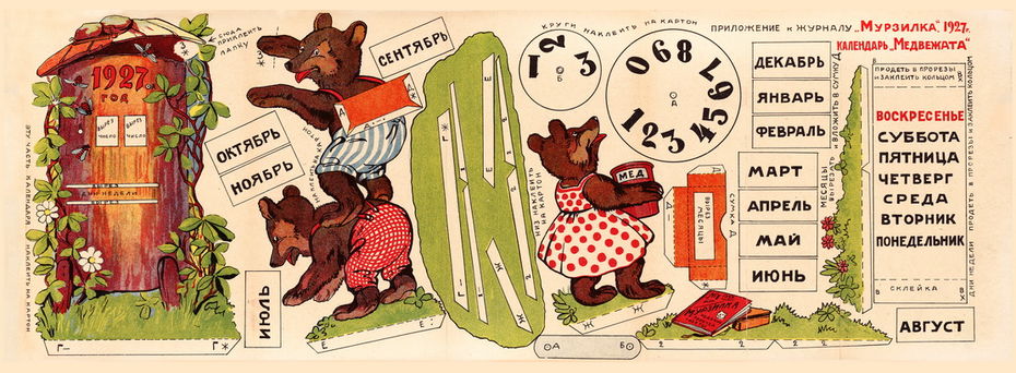 В 1920-е годы Народный комиссариат просвещения организовал программно-методическую работу, и ее результатами стали программы и планы общеобразовательной школы, составленные на основе принципов комплексного построения учебного материала (по темам и направлениям, а не по учебным предметам и дисциплинам). Эти нововведения можно обнаружить, например, в специальных приложениях к журналу «Мурзилка» — это были листы для вырезания с большим количеством фигур и элементов, объединенных одной темой, такие как: «Цирк», «Теневой театр», «В деревне», «На даче», «Деревенское стадо», «Кооператив», «Первомайская демонстрация» и др. Большой интерес в этом плане представляют собой календари — по ним можно было изучать месяца, дни недели, часы и минуты.