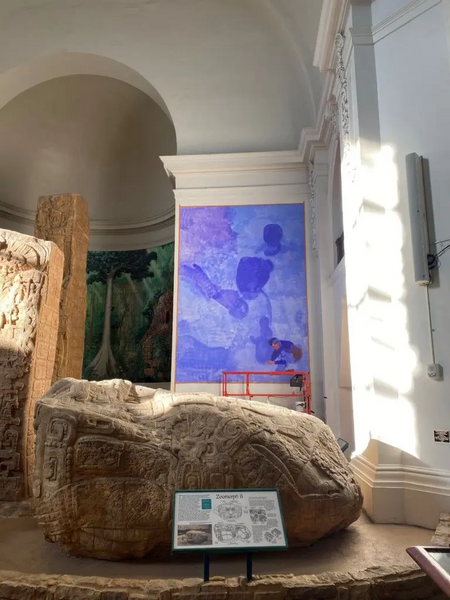 Особое место в экспозиции занимает монументальная фреска художницы и консультантки по делам общин майя Алисии Марии Сиу. Её произведение, созданное в постоянном диалоге с представителями общины, визуально воплощает коллективную память и самоощущение майя. Фрески получили названия K’AJLAY SUUM («Нить памяти» / «Плетень памяти») на языке маайатан и B’ATZ’AL Q’IJ («Нить времени») на языке киче. Они символически объединяют прошлое, настоящее и будущее народа майя, показывая непрерывность их истории и духовной традиции.