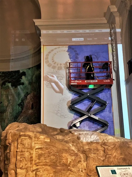 Художница и консультант по вопросам культуры майя Алисия Мария Сиу создаёт фреску для обновлённой выставки «Майя: Сердце неба, Сердце земли», 2022 г. Источник: www.museumofus.org