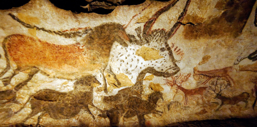Пещера Ласко, ок. 17 000 до н. э. Крупные силуэты животных и мягкая моделировка подчёркивают природную силу и устойчивость. Минеральные пигменты по скале.
