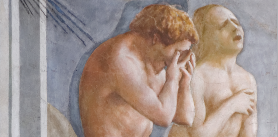 У Мазаччо в «Изгнании из рая» драматизм проявляется именно в освещении. Моделирующий свет подчёркивает объём тел Адама и Евы, делая их горе почти физически осязаемым. Жесты — закрытое лицо Евы, опущенная голова Адама — становятся ключевым носителем смысла. Пространство сведено к минимуму, благодаря чему внимание зрителя целиком сосредоточено на человеческом переживании.