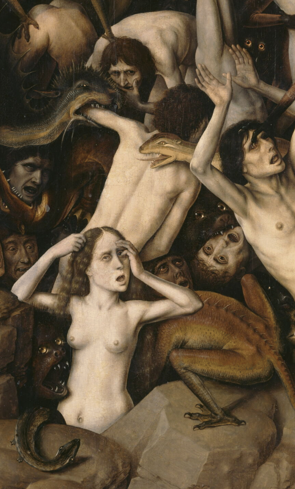 Дирик Бутс, «Падение проклятых», ок. 1470 Вытянутые фигуры и холодная палитра передают внутренний распад и потерю опоры. Масло по дереву.
