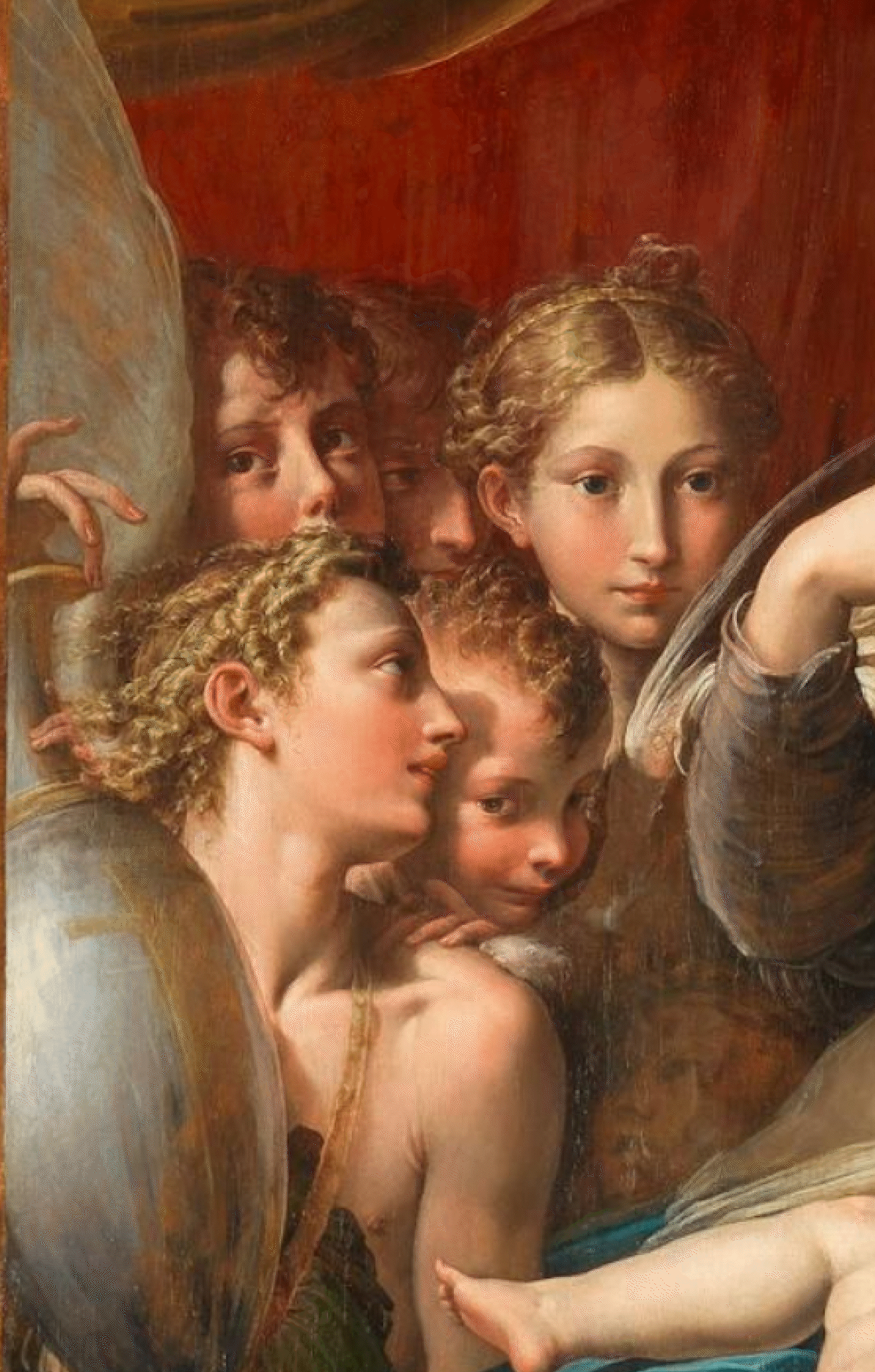 В «Деве с длинной шеей» Пармиджанино кажущаяся утончённость становится признаком тревоги. Фигура Марии вытянута, пропорции нарушены, пространство словно смещается. Линии мягкие, гибкие, но их плавность создаёт ощущение зыбкости. Колонна на заднем плане слишком тонка, фигуры слишком малы — мир словно теряет устойчивость. Цвета холодные, жемчужные, что усиливает атмосферу хрупкой изысканности.