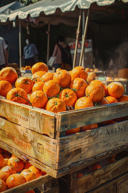 promt: a box of tangerines, some scattered nearby, against the background of people and market tents, natural shades, realistic --ar 2:3 --s 250 --v 6.0