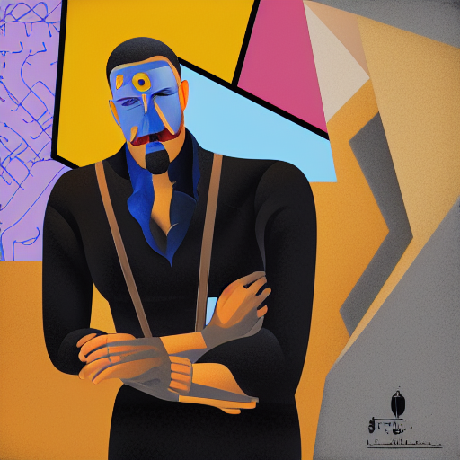 В данной картине нейросеть в лице будто показала более классические черты, а все остальное оставила в кубизме, что как раз соответствует запросу. Возможно здесь преобладает кубизм, однако все равно видно, что здесь не только след от Пикассо.