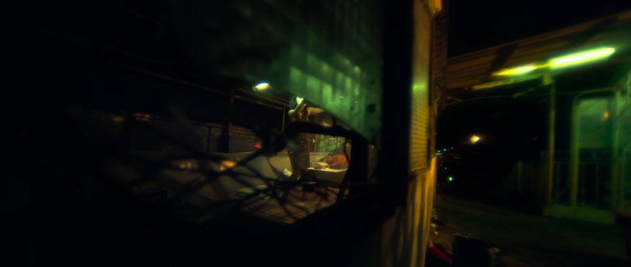 Зритель также следит за действиями и повседневностью киллера, буквально подглядывая за ним в окно.