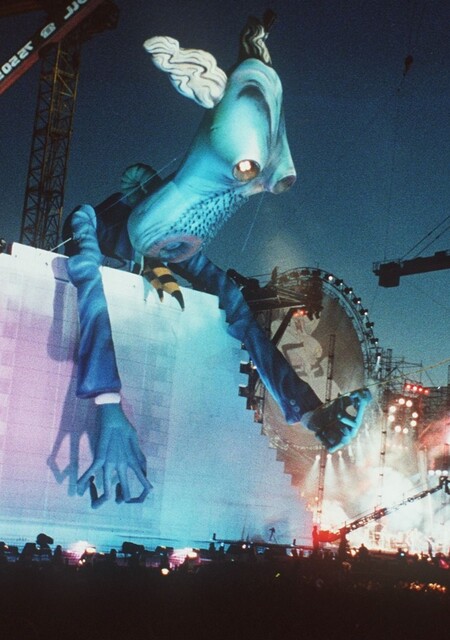 Во второй части шоу на стену проецировались анимации Джеральда Скарфа, а в финале она эффектно рухнула.