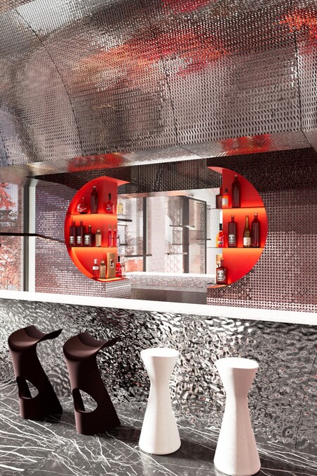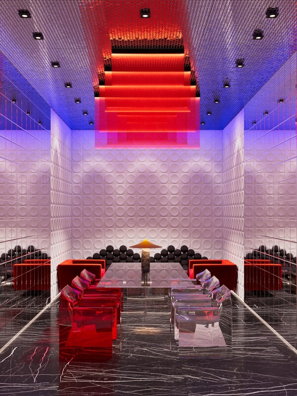 Пространство организовано с возможностью проведения в барной зоне шоу молекулярной кухни и kitchen show, дополненных интерактивными 3D-mapping инсталляциями.