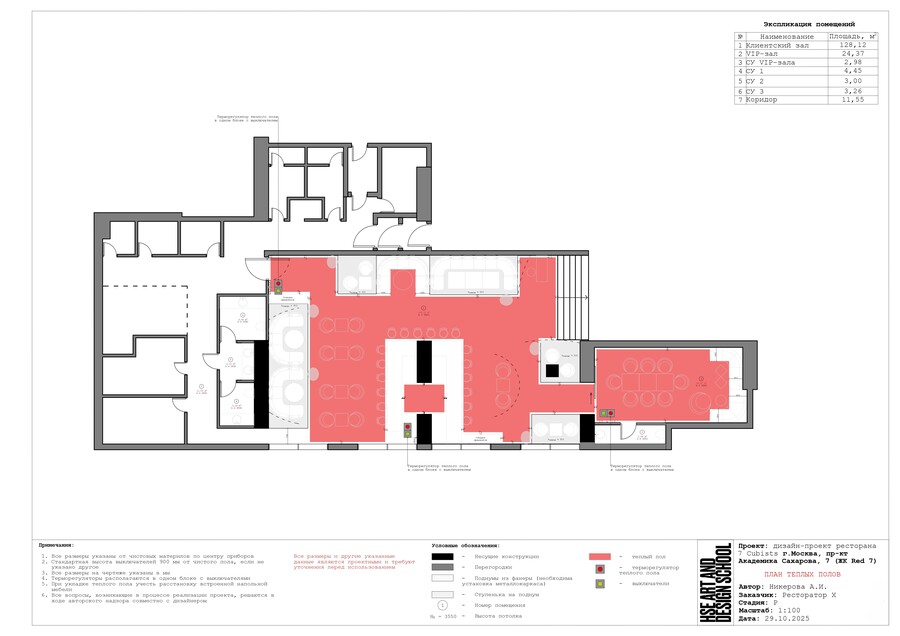 Проектируемый объект находится в уникальном ЖК RED7, в котором помимо жилых апартаментов располагаются коворкинг, клубный кинотеатр, Небесная гостиная и арт-галерея Art Maison. Это подтолкнуло меня на создание современного арт-ресторана с авторским меню паназиатской кухни.