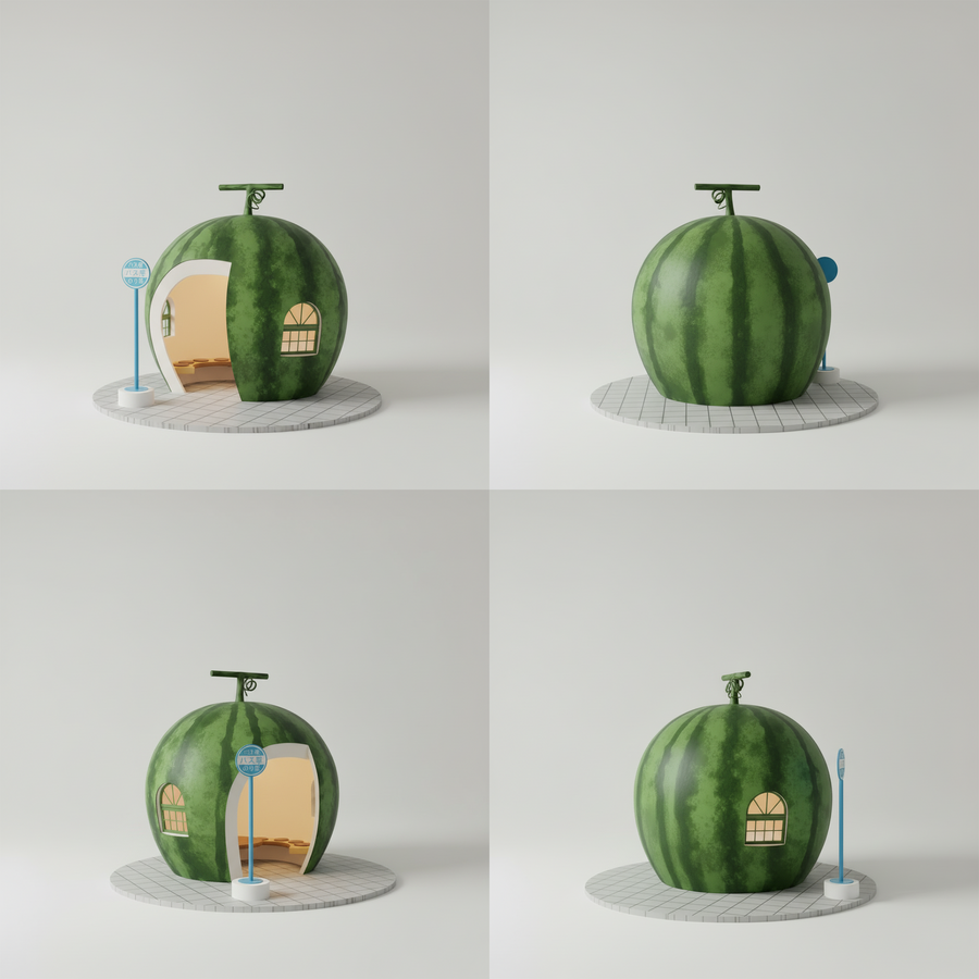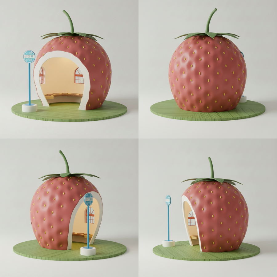 Проект переосмысляет реальные автобусные остановки в форме фруктов из японского городка Конагаи и превращает их в интерьерные светильники.