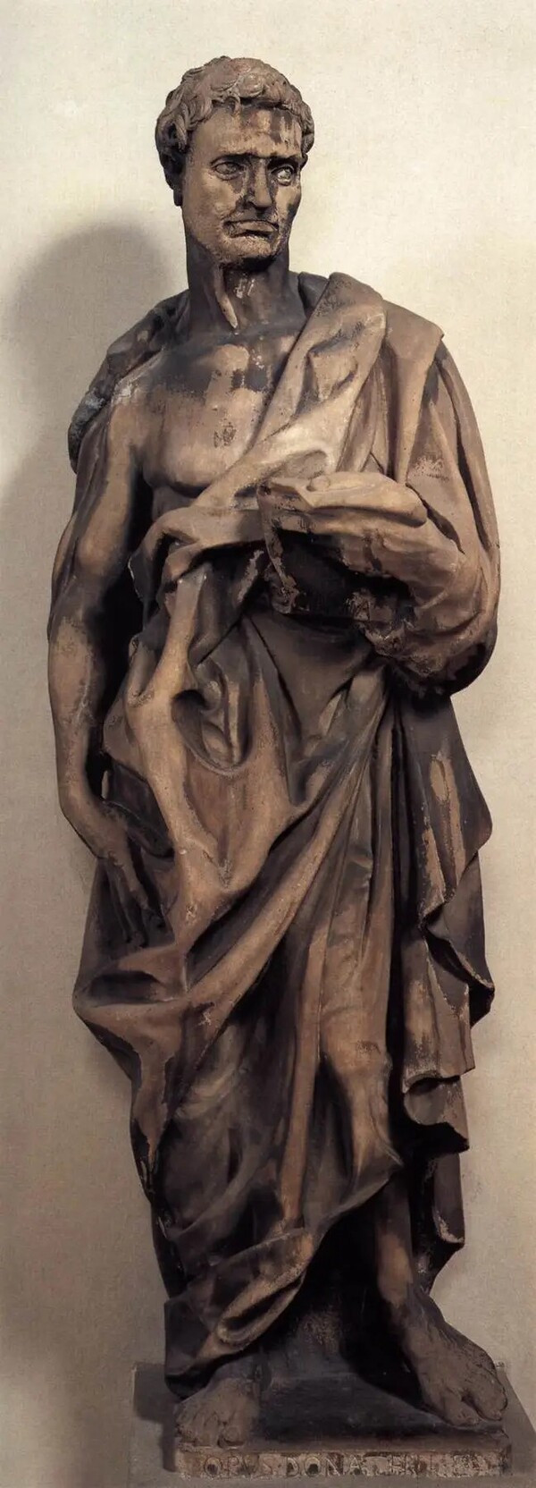 Я предполагаю, что вклад Донателло в развитие скульптуры в период Ренессанса заключался в том, что все его технические приемы были подчинены одной цели: он хотел показать не идеальный образ в камне, а живого человека.