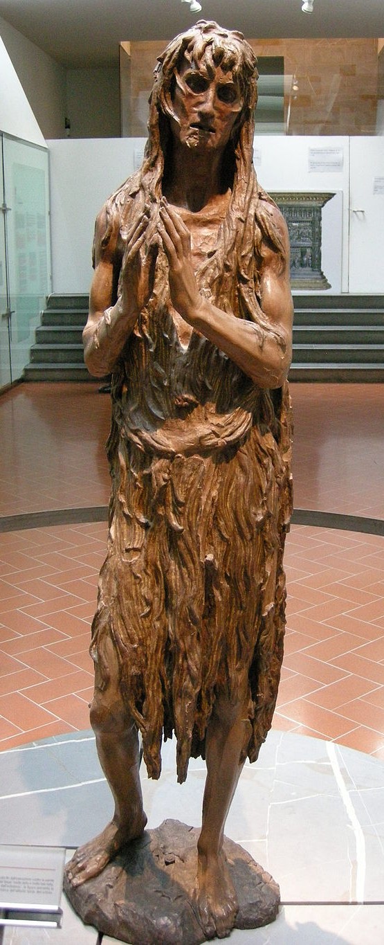 Слева: Донателло. «Мария Магдалина». Дерево. Ок. 1454 — 1457. Кафедральный музей, Флоренция. Справа: Донателло. «Иоанн Креститель». Дерево. 1438. Церковь Санта-Мария-Глорьоза-дей-Фрари, Венеция.